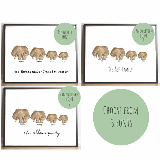 For pets, I tend to include little paw prints to represent them. For more custom inclusions e.g. a portrait of a dog or cat, please get in touch as I'll need to charge a little more to cover my time for that (but the bonus is, you could end up with a pet portrait too, separate to the family print!)