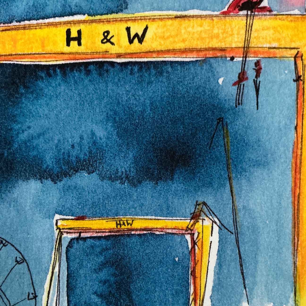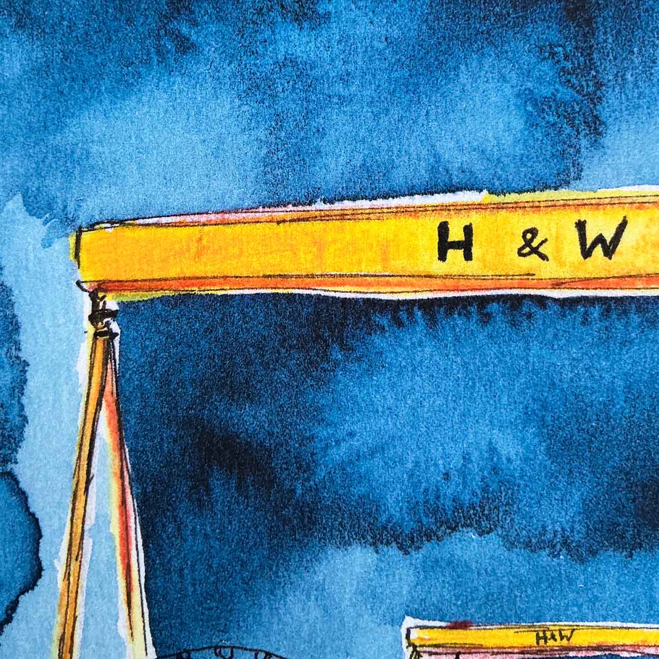 I’ve been obsessed with the Harland & Wolff cranes since I was a teenager, no matter how many times I draw them, they never get old! To me, they’re more than just landmarks; they’re a piece of home.