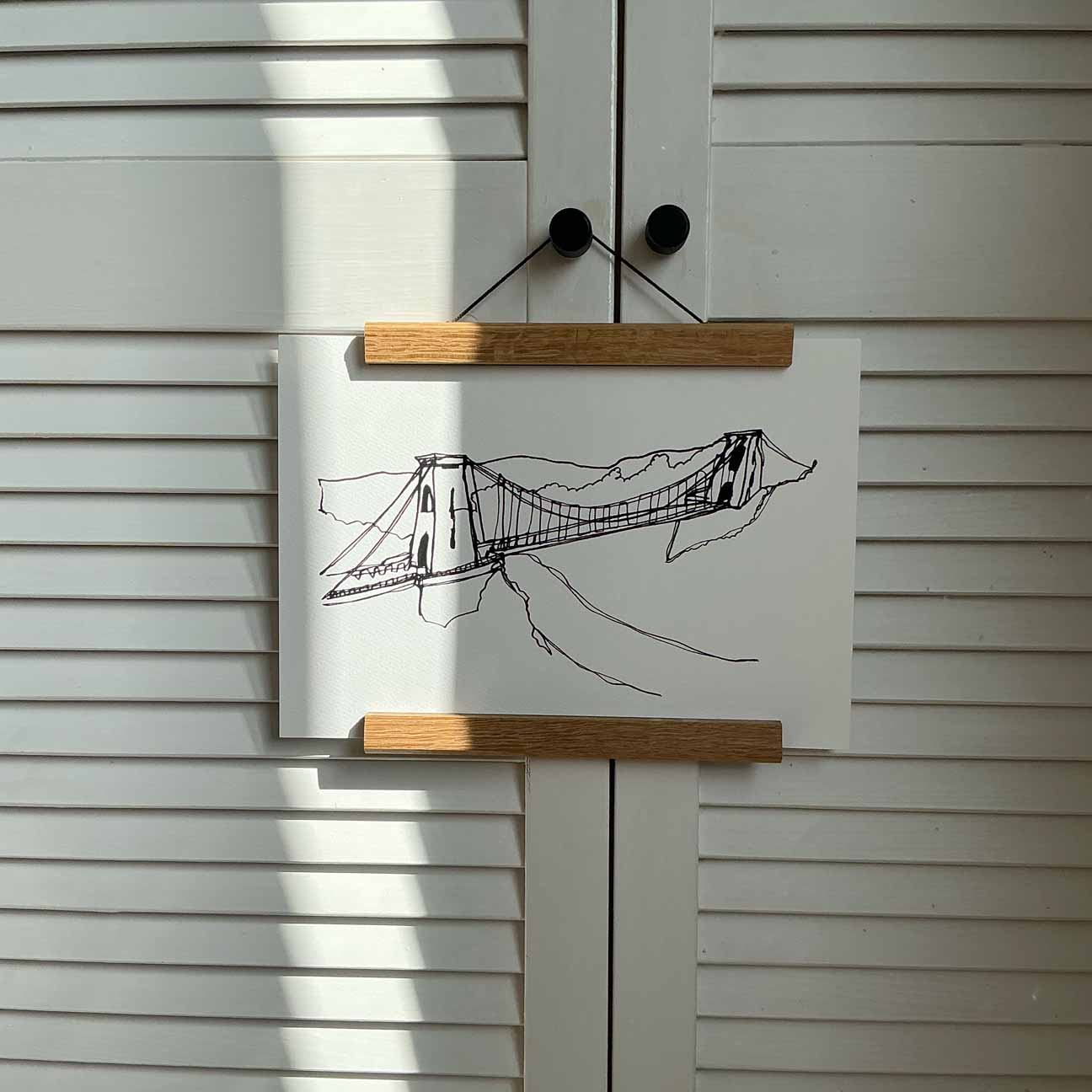 This fine art print is based on my original single-line drawing of the iconic Clifton Suspension Bridge in Bristol. Created using one continuous line, the piece captures the bridge’s unmistakable silhouette with a minimalist, expressive style that leaves room for imagination.