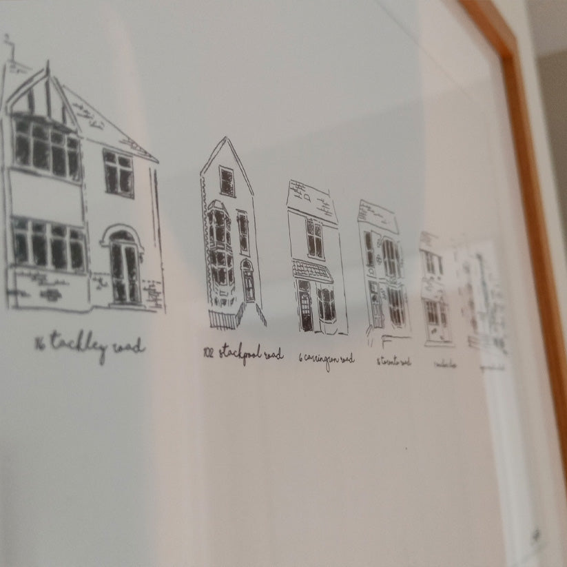 Celebrate a life's journey through the places that matter most. From the schools you grew up in, to your first home, to the wedding venue where you said "I do" - this bespoke timeline print captures each special building in a row of simple hand-drawn illustrations.