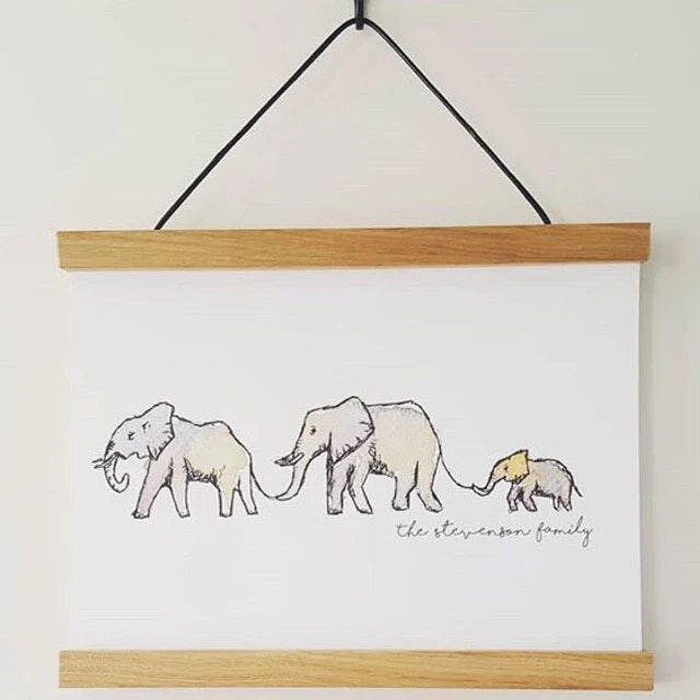 What better way to celebrate your family than by representing them as elephants! This piece has been created from my original watercolour illustration of an elephant family. This would be a perfect gift for Father's Day, Mother's day, new baby gift, christening, Grandparent's gift, birthday... the list really is endless!