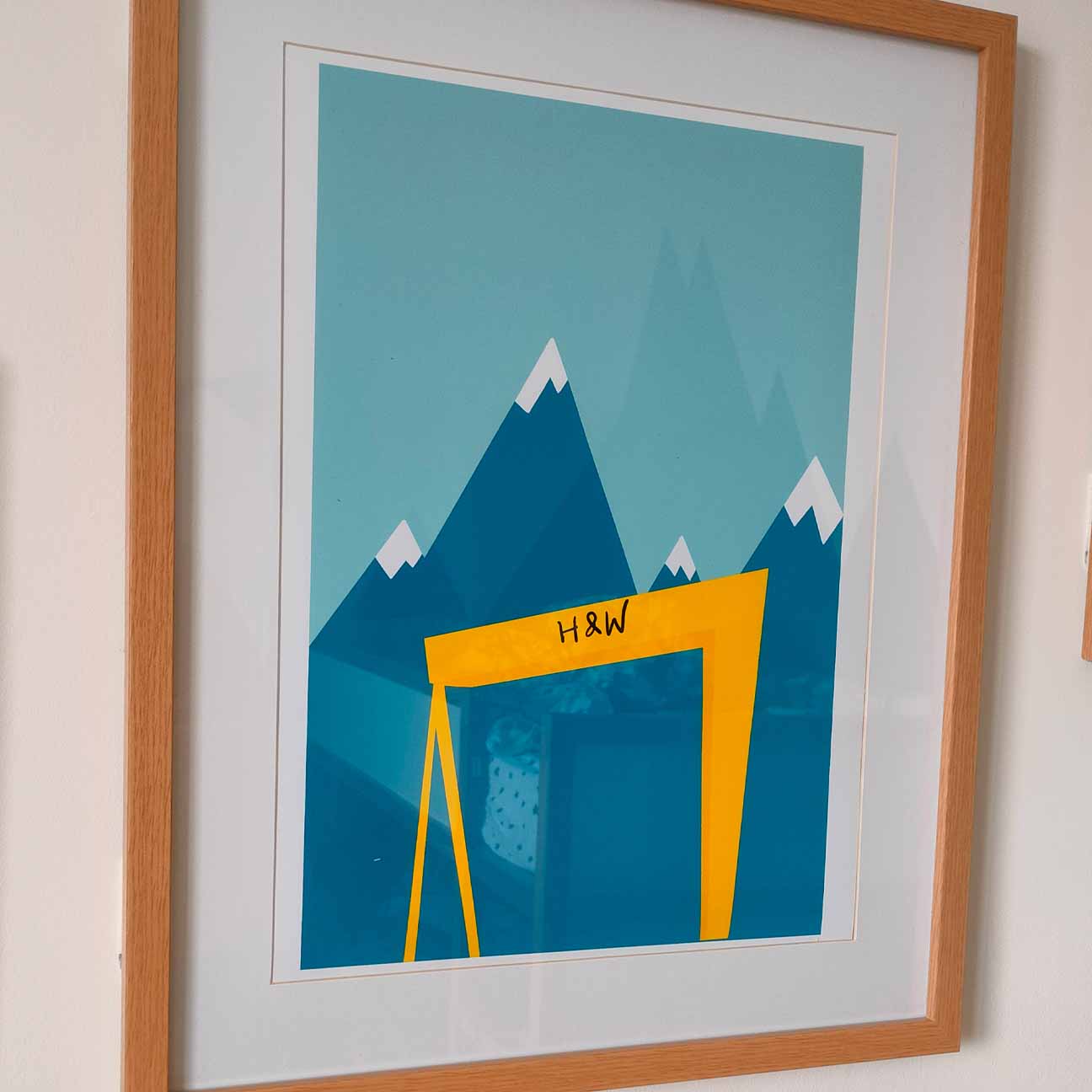 This playful print was inspired by my son’s mountain-themed bedroom and being half English, half Northern Irish, I really wanted a print that would remind him of his NI roots.
